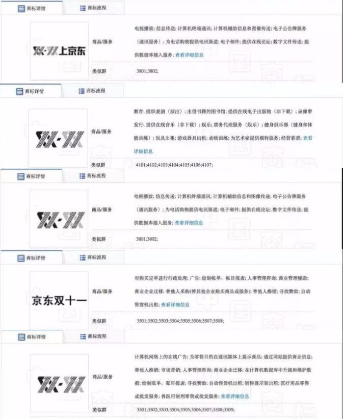 据悉,此次北京知产法院受理的“双十一”商标共有五件,涉案商标分别为京东公司申请注册的“双11.双11及图”、“京东双十一”、“ 双11.双11上京东及图”等五枚商标(简称诉争系列商标),核定使用在第35类“广告、计算机网络上的在线广告”;第38类“电视播放”;第41类“教育”等服务上。